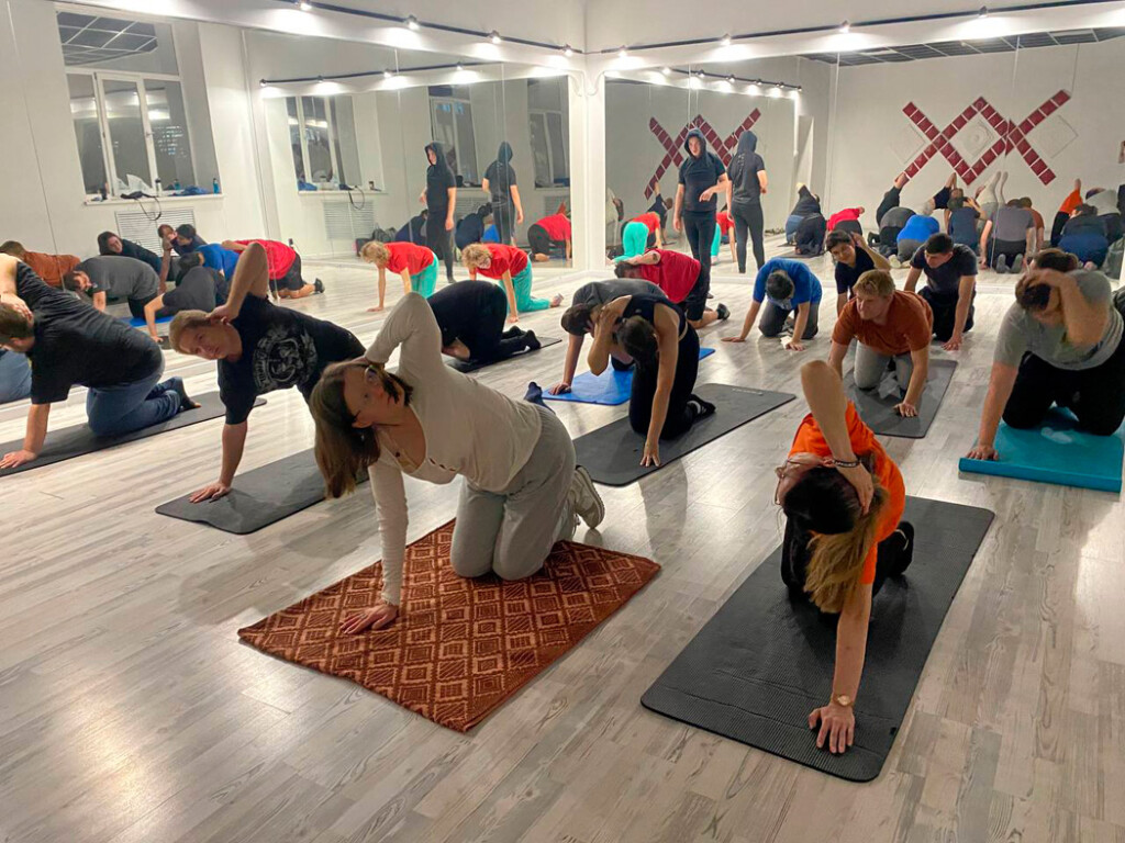 Вместе мы учились чувствовать своё тело и слушать дыхание. Тренер внимательно следил за техникой каждого, чтобы упражнения приносили только пользу и радость. Было много старания, рабочих моментов, но и без смеха тоже не обошлось – в перерывах между асанами мы успевали общаться и шутить. Ведь как не рассмеяться, когда вместе с другом валишься из асаны «обезьяна»?