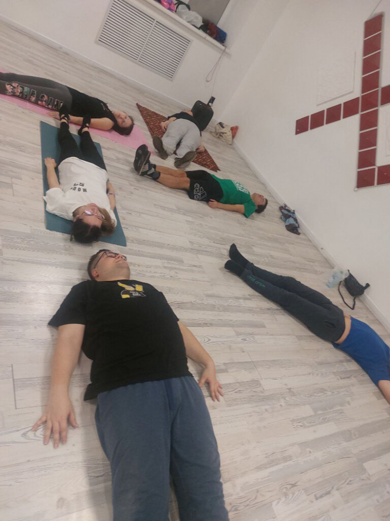 Вместе мы учились чувствовать своё тело и слушать дыхание. Тренер внимательно следил за техникой каждого, чтобы упражнения приносили только пользу и радость. Было много старания, рабочих моментов, но и без смеха тоже не обошлось – в перерывах между асанами мы успевали общаться и шутить. Ведь как не рассмеяться, когда вместе с другом валишься из асаны «обезьяна»?